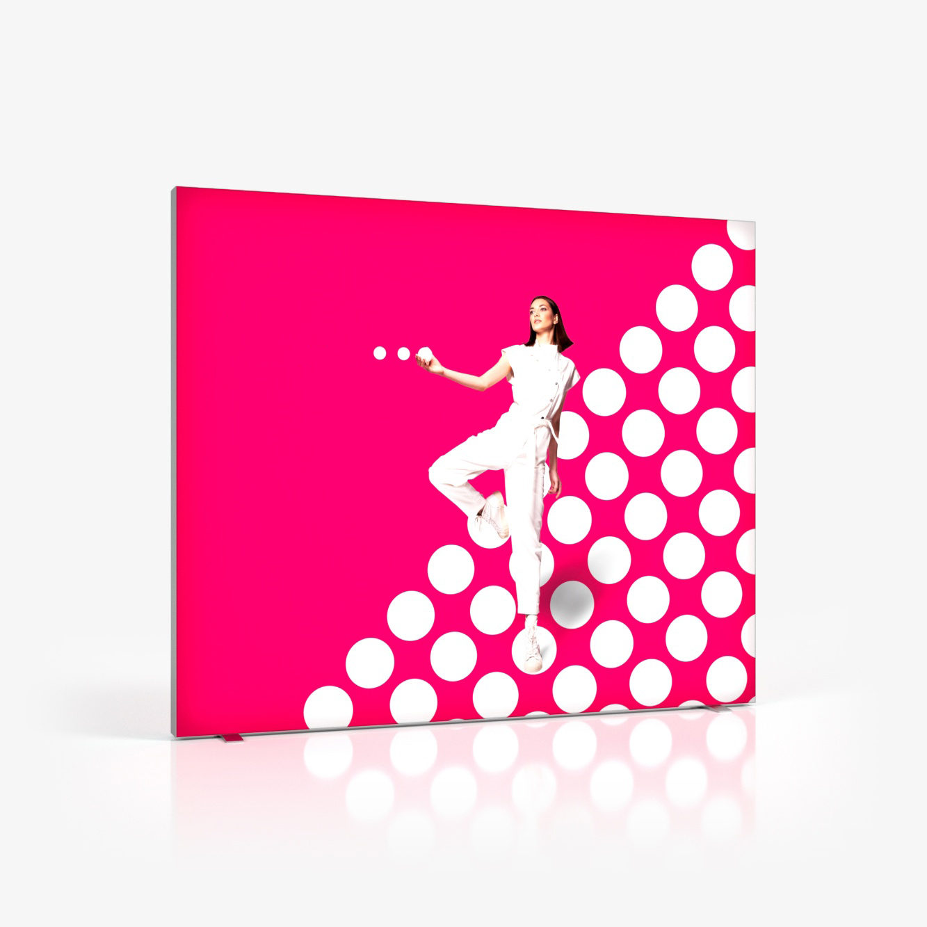 Akkurat som selve rammen, er trykk til adFrame LMD fullt tilpassbare. Designet ditt vil bli trykket på slitesterkt tekstilmateriale. Sublimeringstrykkmetoden sikrer fotografisk kvalitet. I tillegg gjør den tosidige LED-lysboksen det mulig å bytte grafikk raskt, noe som gjør det enkelt å vise forskjellig innhold avhengig av arrangementet.
